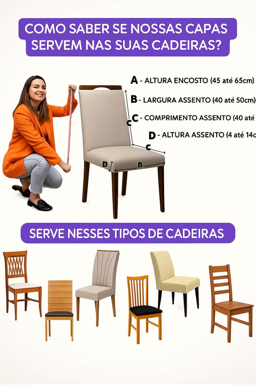 O tecido impermeável protege contra líquidos, respingos, manchas e sujeiras inesperadas — ideal para casas com crianças, pets, restaurantes, hotéis ou quem preza por praticidade. O material super flexível se ajusta perfeitamente ao formato da cadeira, valorizando o design e garantindo um caimento impecável.